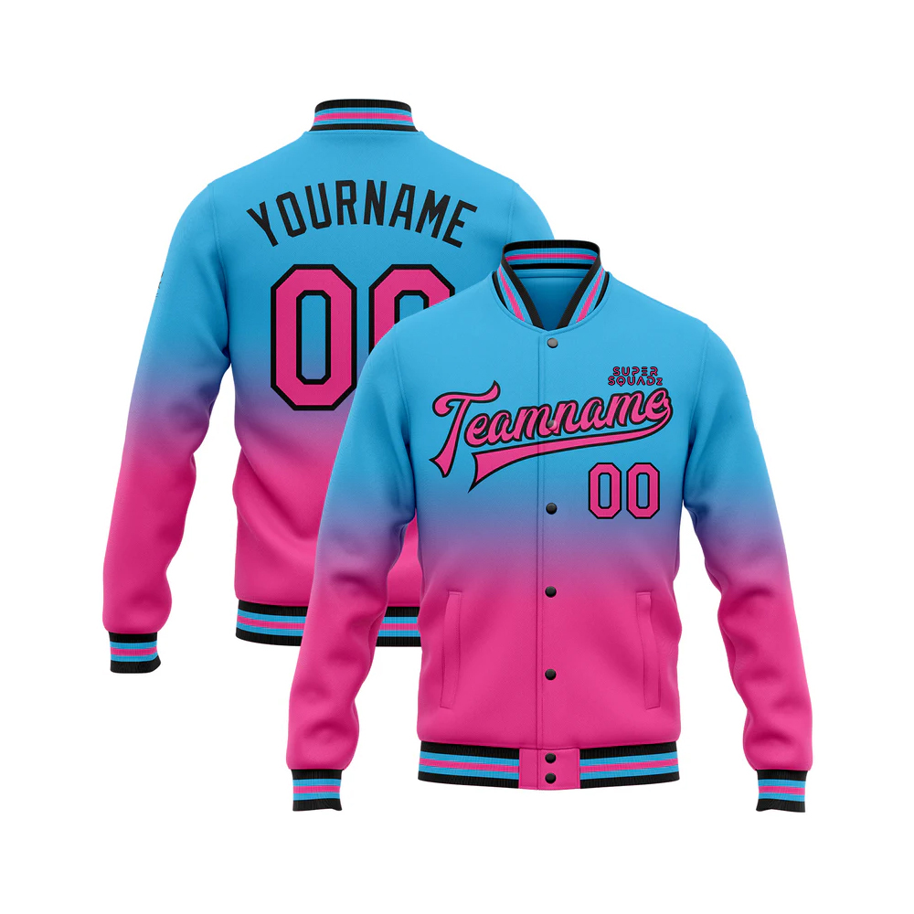 Classic varsity design with ribbed cuffs and hem.